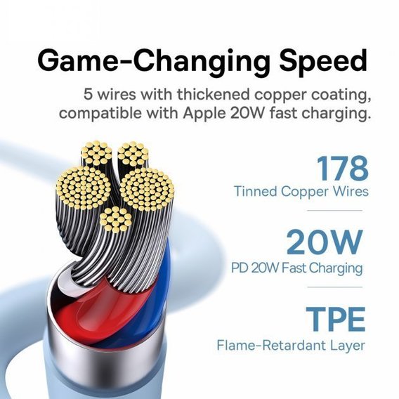 Кабель Baseus Cable USB-C to Lightning Silica Gel 20W 1.2m Blue (CAGD020003)