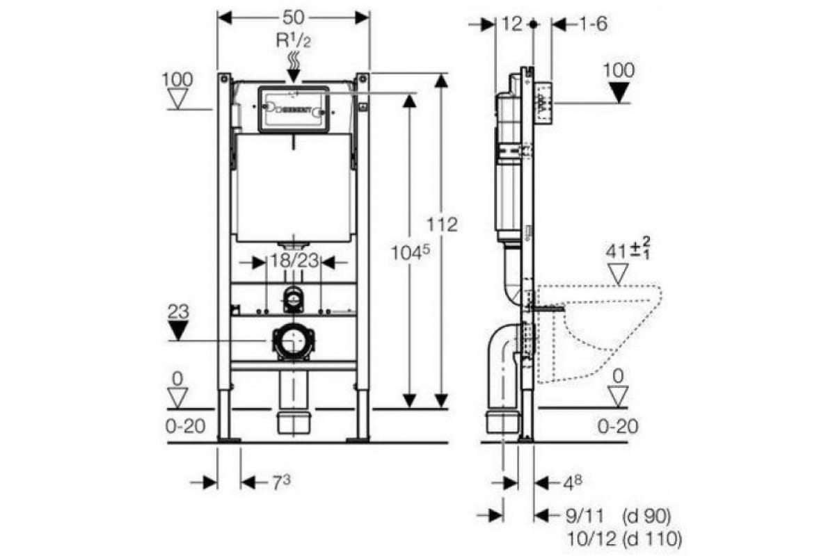 В комплект Duofix Geberit 458.161.21.1 входят: монтажный элемент Duofix UP182 Геберит 458.160.00.1, смывная клавиша Delta21 с хромированным глянцевым покрытием, звукоизолирующая прокладка для подвесного унитаза или биде, комплект крепления к стене для Duofix UP182. Монтаж осуществляется в гипсокартонные стены на высоту рамы или по высоте помещения перед капитальной либо гипсокартонной стеной. Высота над полом 120 см, ширина 50см.