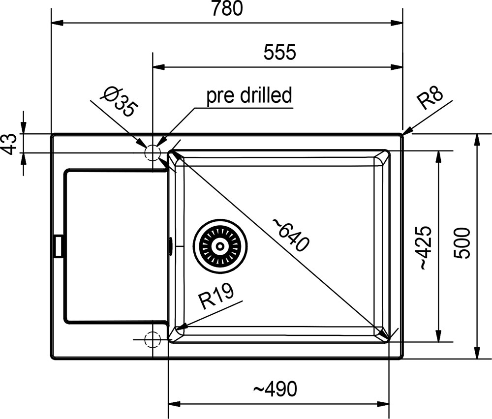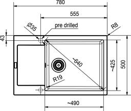 Способ установки врезная, форма прямоугольная, материал искусст. гранит, количество чаш 1, ширина 78 см, длина (диаметр) 50 см, глубина основной чаши 20 см.