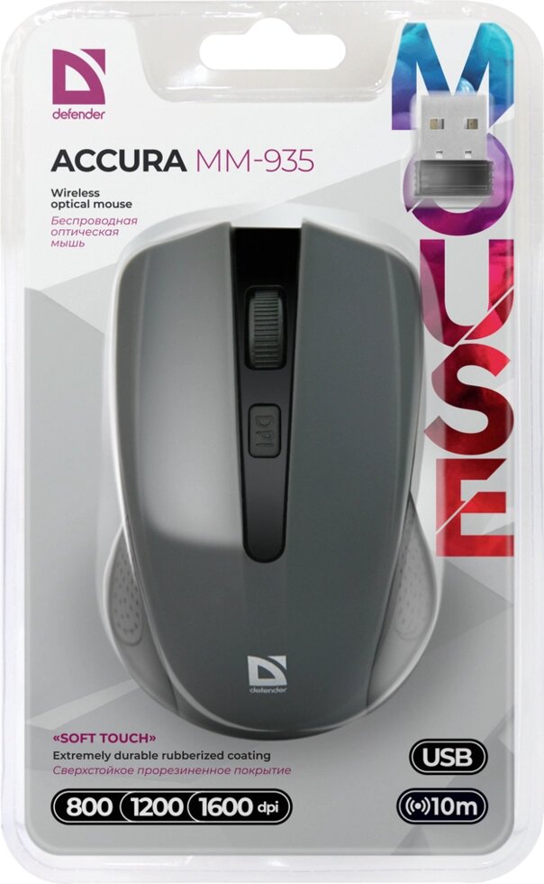 Мышь беспроводная Defender Accura MM-935 800-1600dpi Серая 52936