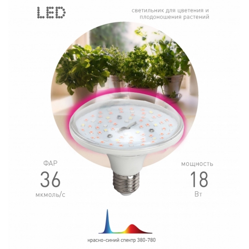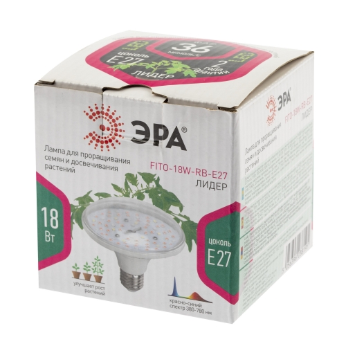 Фитолампа для растений светодиодная ЭРА FITO-18W-RB-E27 красно-синего спектра 18 ВТ Е27