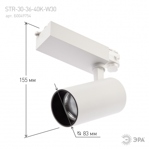 Трековый светильник трехфазный ЭРА SТR-30-36-40K-W30 узкий луч 4000K белый