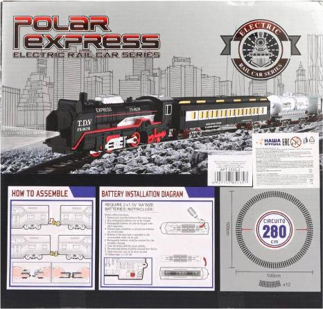- В наборе локомотив, вагон (2 шт), рельсы (12 шт)