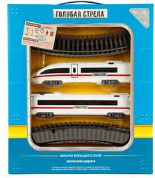 - В наборе локомотив (1 шт), вагон (1 шт), рельсы (12 шт)