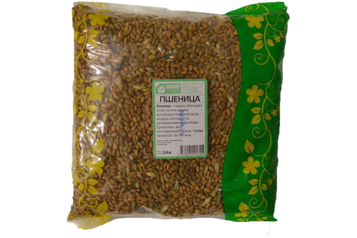 Семена Зеленый уголок Пшеница, 0.8кг 4660001293809 улучшают почву, ее физические свойства и состав. Как сидерат семейства Злаковые обогащает почву калием и азотом. Корневая система мочковатая. Глубоко разрыхляет почву, повышает водо- и воздухопроницаемость, особенно на тяжелых глинистых и суглинистых почвах.