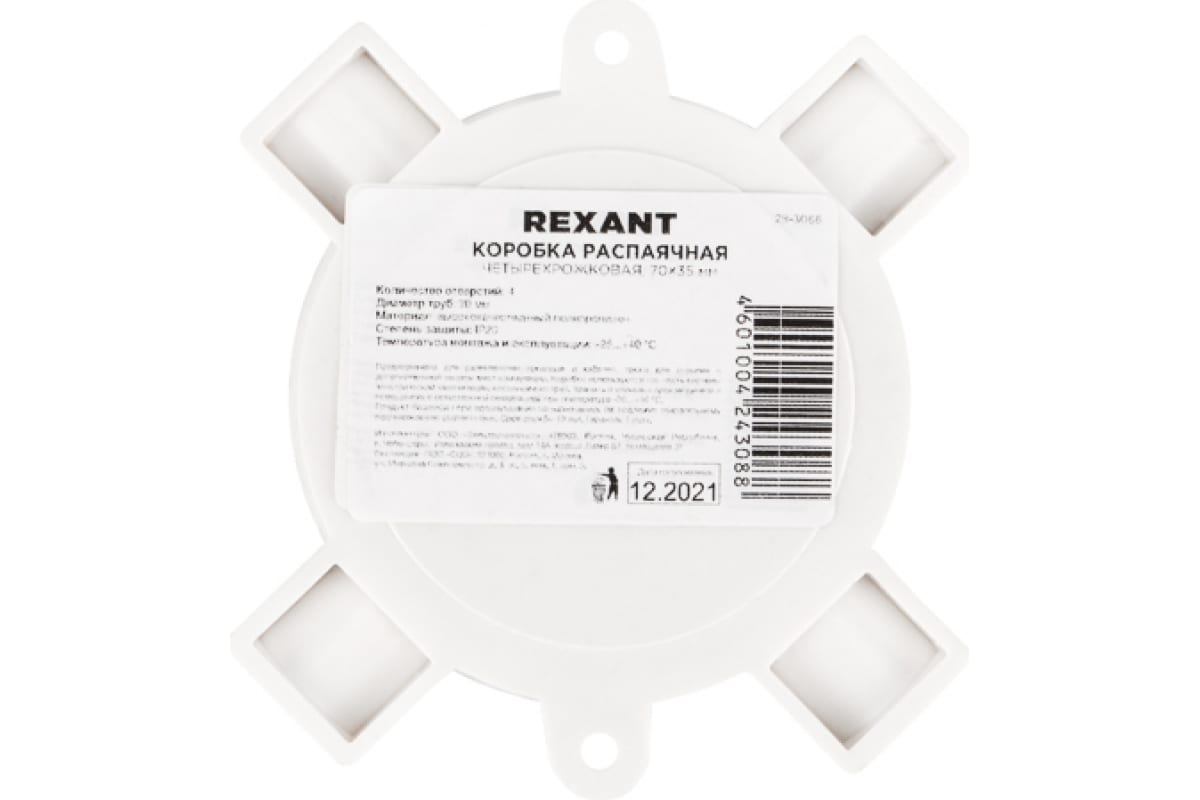 Распаячная четырехрожковая коробка REXANT открытой установки 70x35 IP20 28-3066