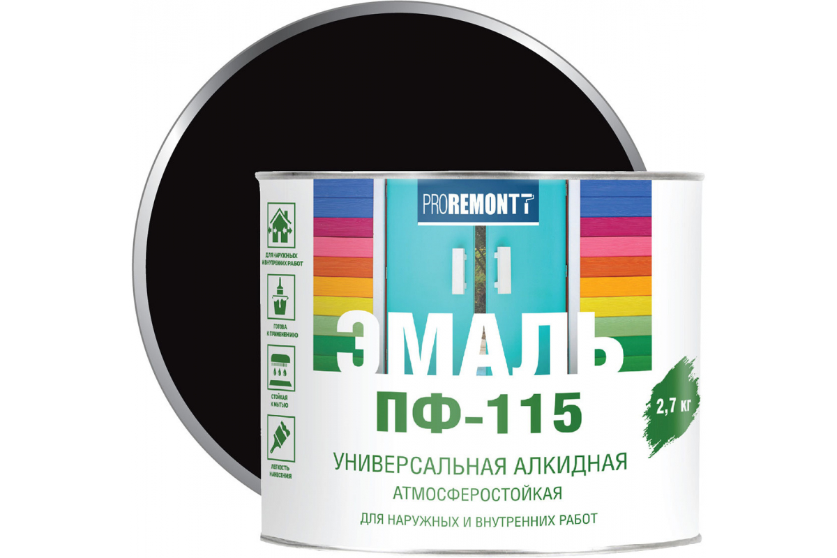 Эмаль PROREMONTT ПФ-115 черная, 2.7 кг Лк-00004482