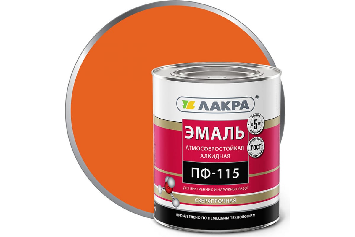 Эмаль Лакра ПФ-115 оранжевая, 2.8 кг 90001804646 используется для окрашивания дверей, подоконников из дерева и изделий из металла. Подходит для покрытия поверхностей из бетона и цемента. Образует плотный защитный слой, устойчивый к влаге и неблагоприятным условиям окружающей среды.