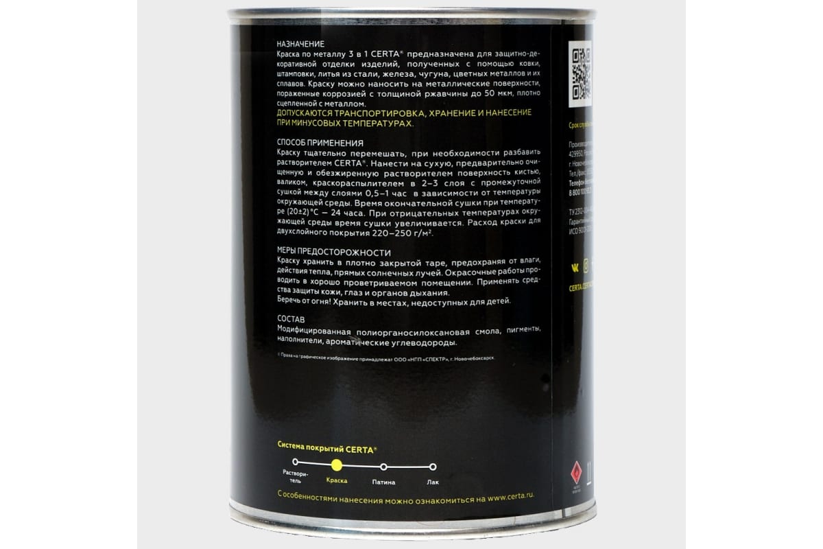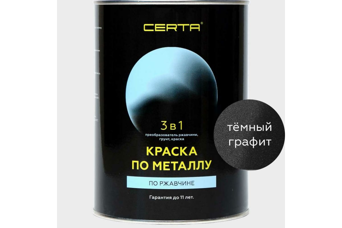 Краска по металлу CERTA 3 в 1 (по ржавчине; графит темный; 0.8 кг) KRGL0033