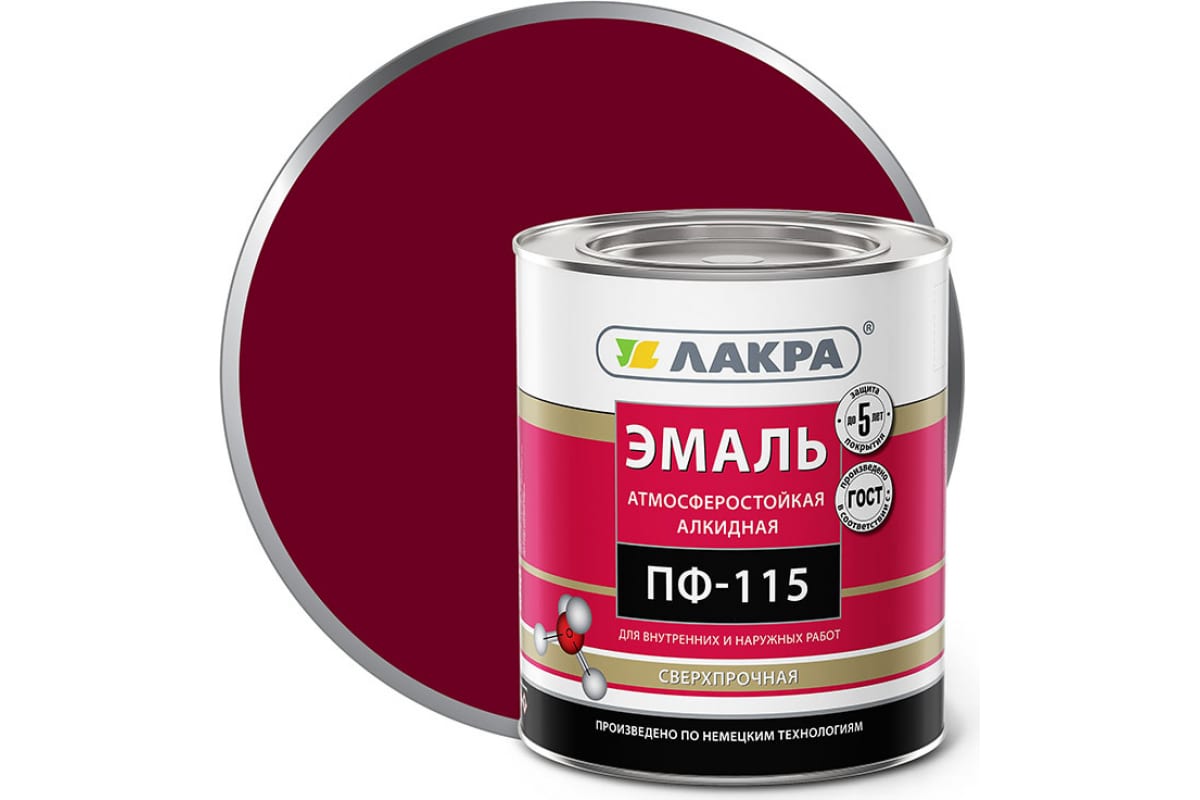 Эмаль Лакра ПФ-115 вишневая, 2.8 кг 90001804638 используется для окрашивания изделий из дерева, металла и минеральных материалов. Пригодна как для работы на улице, так и в помещении. Покрытие отличается влагостойкостью, значительной степенью адгезии и защитно-декоративными свойствами.