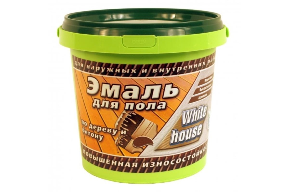 Акриловая эмаль для пола White House (светлый бежевый; 2.2 кг) 15871 на водной основе предназначена для окраски деревянных и бетонных полов внутри всех типов зданий и сооружений (А-В), а также полов снаружи помещений, защищенных от прямого воздействия осадков соответствующими конструкциями. Образует гладкое покрытие устойчивое к истиранию и мытью с применением бытовых моющих средств.