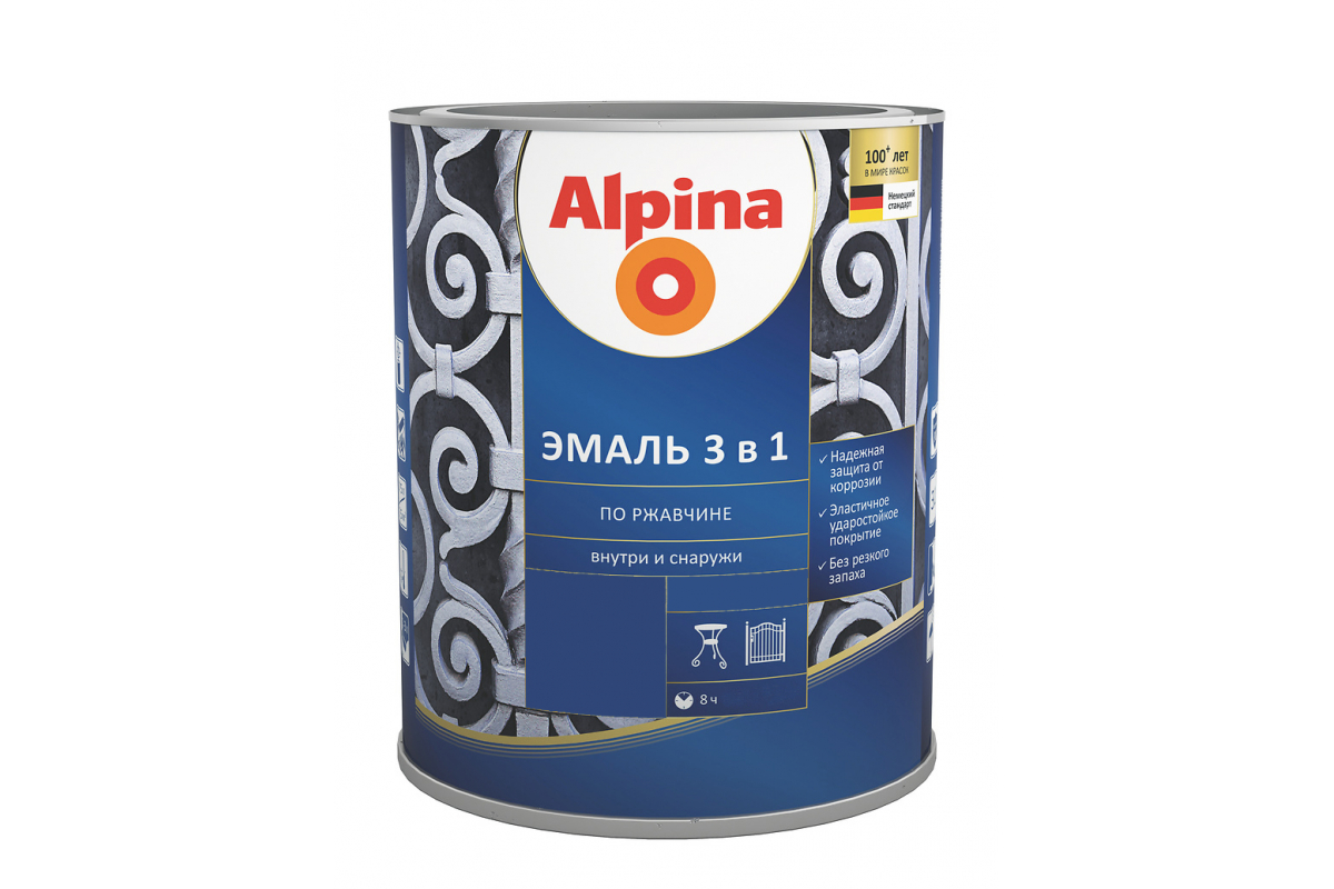 Эмаль ALPINA SVT алкидно-уретановая, по ржавчине 3 в 1, RAL 9005 черный, 0.75 л 948103662