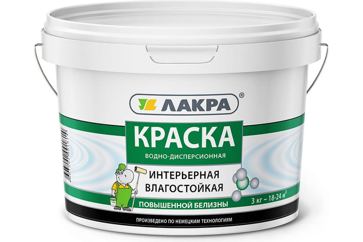 Влагостойкая интерьерная краска повышенной белизны Лакра 3 кг 90000751221 используется для обработки деревянных и минеральных поверхностей. Отличается хорошей паропроницаемостью и укрывистостью.