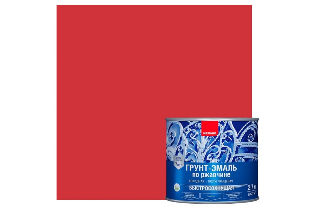 Быстросохнущая грунт-эмаль 3в1 Neomid красный RAL 3020 2.7 кг Н-FdCoat-2,7/крас