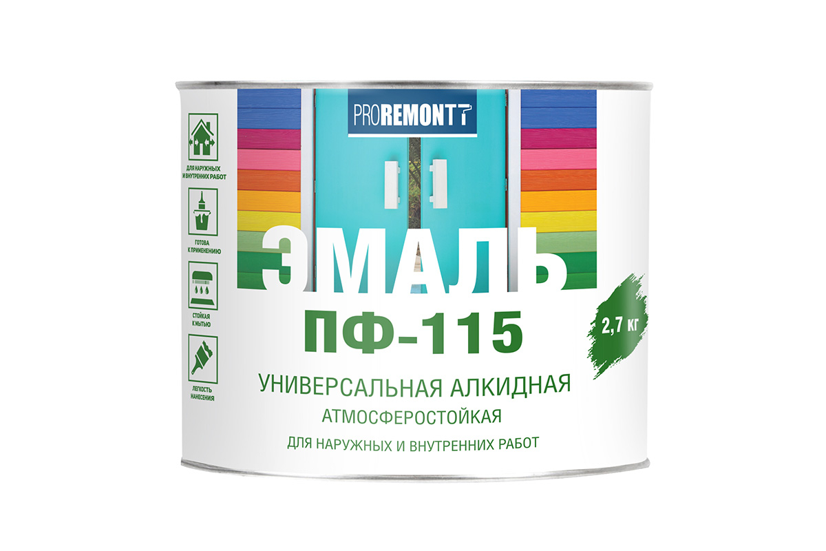 Эмаль PROREMONTT ПФ-115 желтая, 2.7 кг Лк-00004462 используется при проведении отделочных работ внутри и вне помещений.