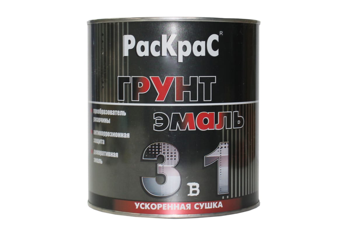 Грунт-эмаль темно-вишневый "3 в 1" РасКрас RAL 3005 2,5 кг 4690417023530 представляет собой суспензию антикоррозионных пигментов и наполнителей в растворе модифицированного алкидного лака с добавлением органических растворителей и целевых добавок.