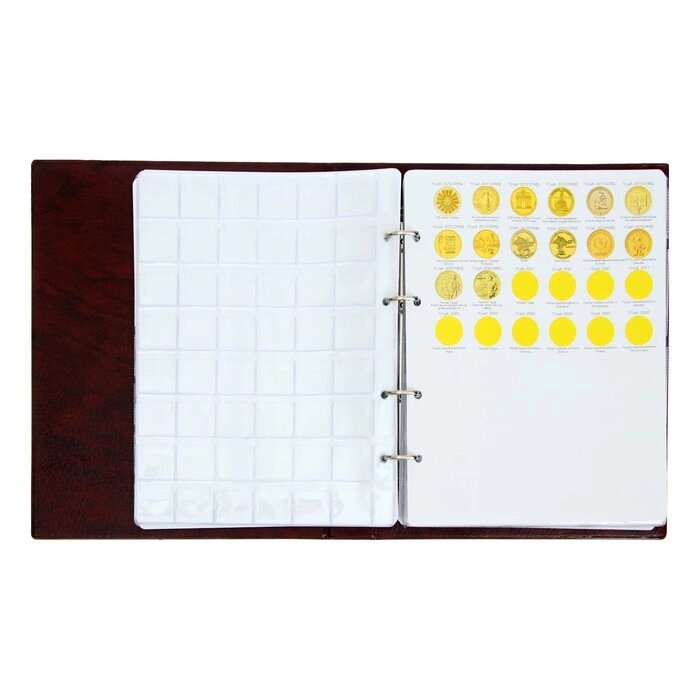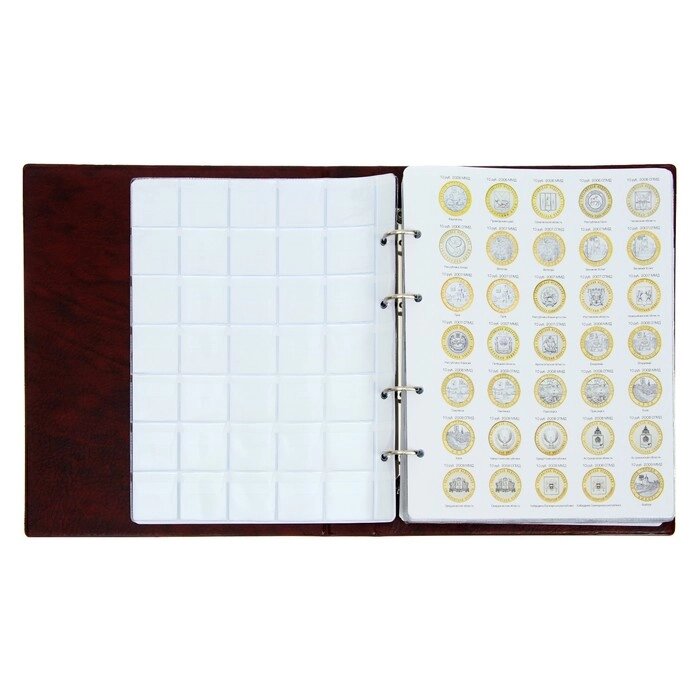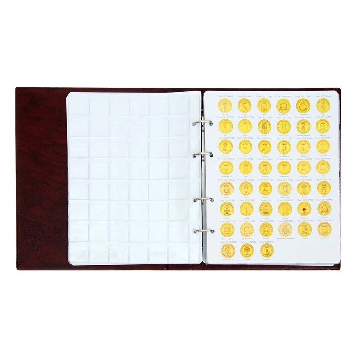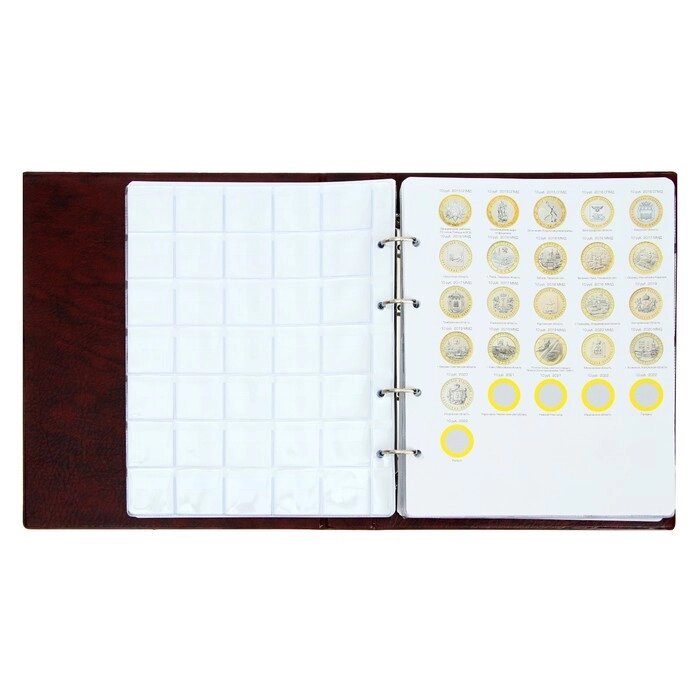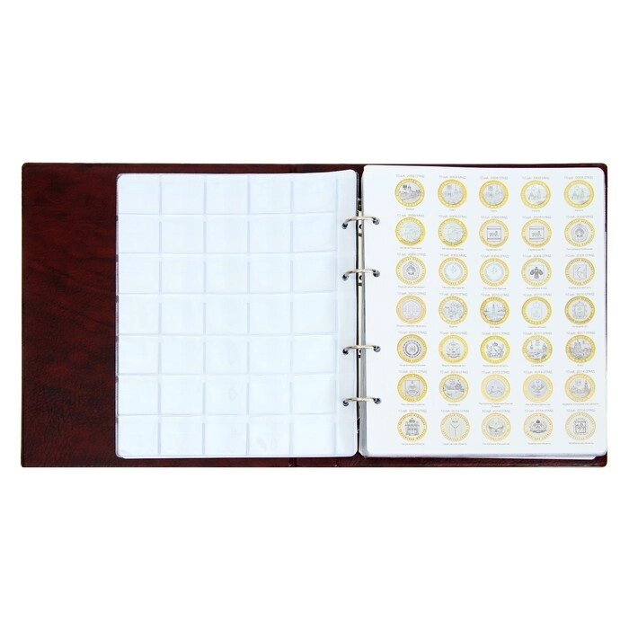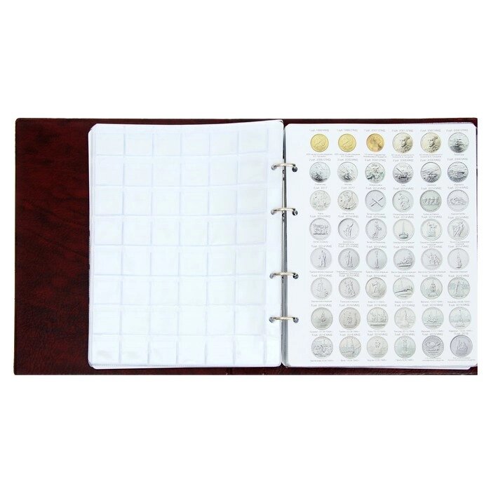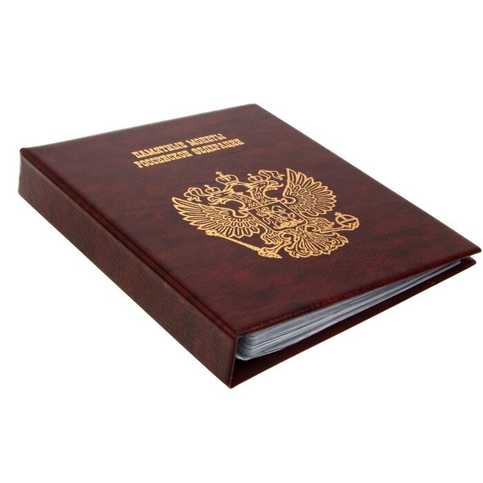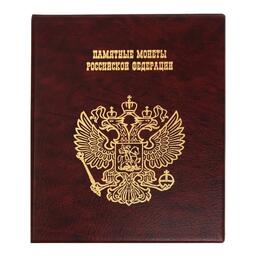 Альбом для монет на кольцах 225 х 265 мм, "Памятные монеты РФ", обложка искусственная кожа, 13 листов и 13