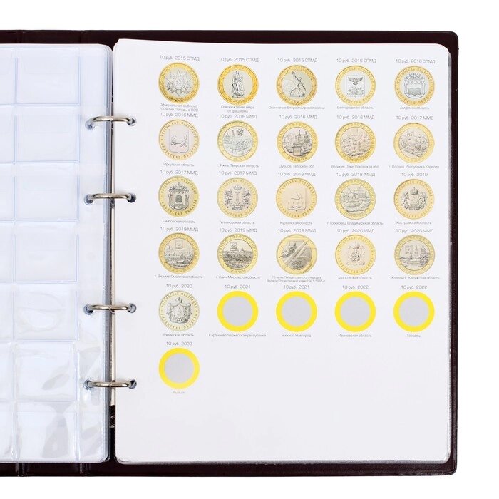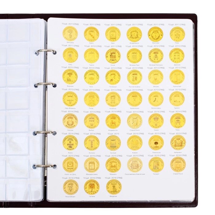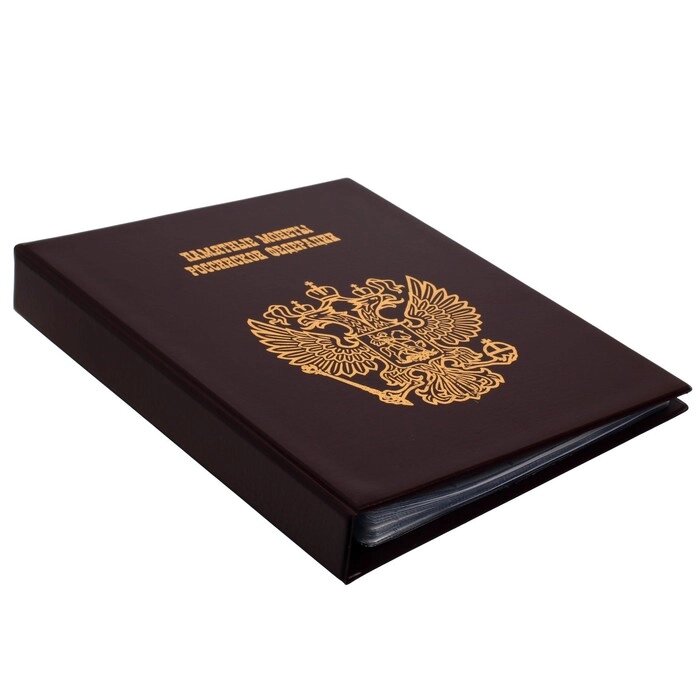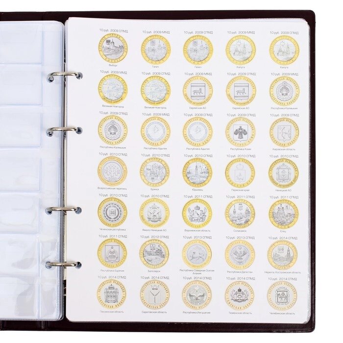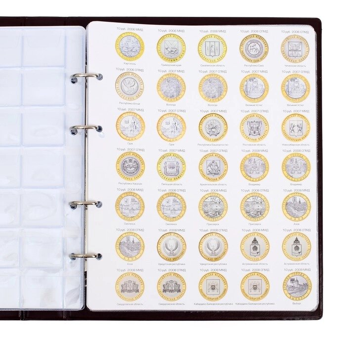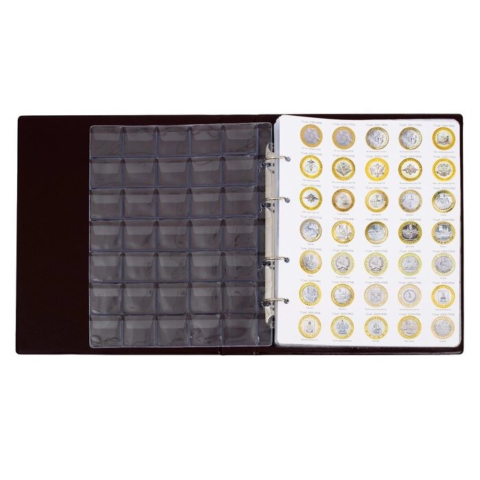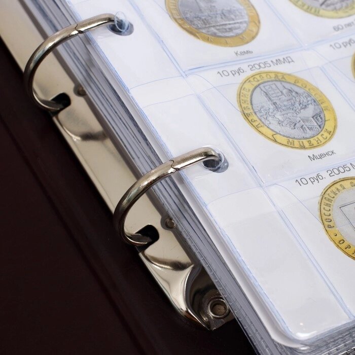Альбом для монет на кольцах Calligrata 225*265мм, "Памятные монеты РФ"13л+13разд. корич