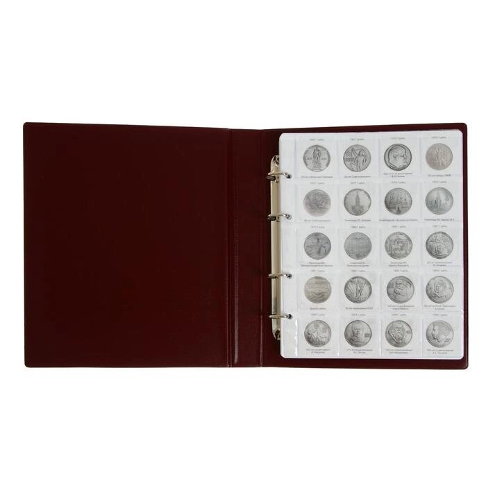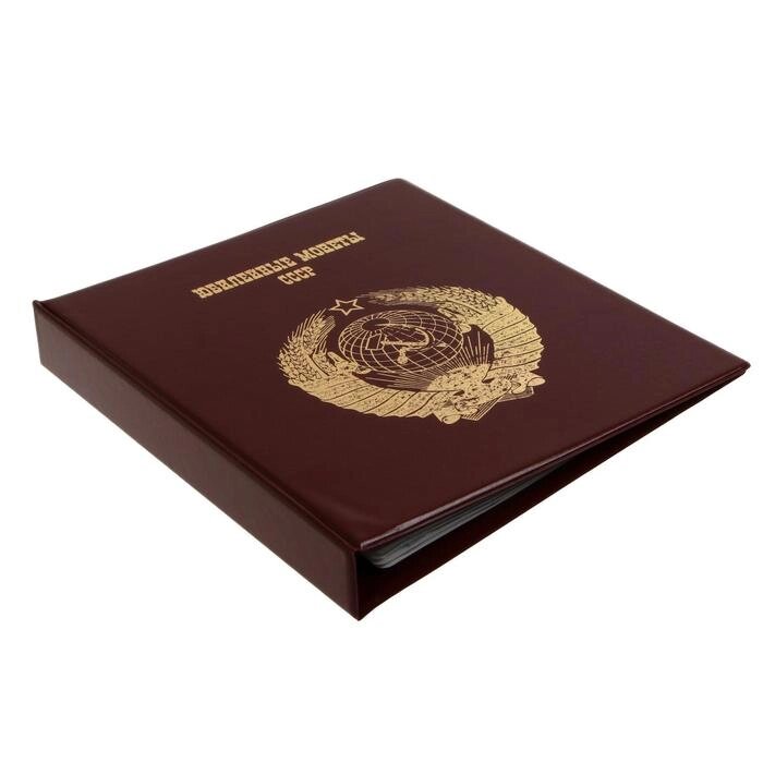 Альбом для монет на кольцах 225 х 265 мм Calligrata, "Памятные монеты СССР", обложка ПВХ, 4 листа и 4 цветных
