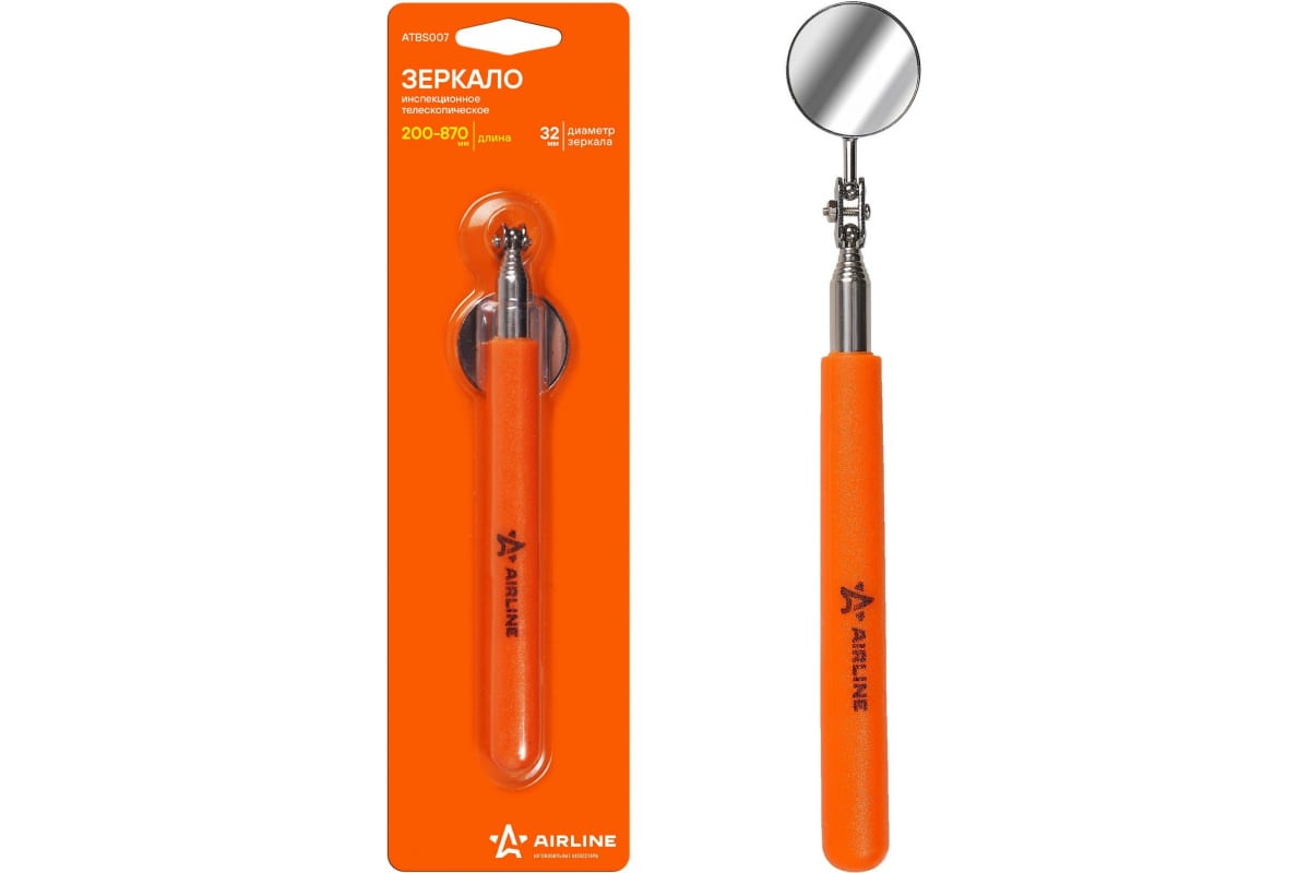 Телескопическое инспекционное зеркало AIRLINE d=32мм, L=200-870 мм ATBS007 предназначено для осмотра узлов и агрегатов, расположенных в труднодоступных местах. Может применяться в бытовой и профессиональной сферах. Изделие выполнено из качественной стали и отличается прочностью и надежностью. Эргономичная телескопическая рукоятка обеспечивает комфортную эксплуатацию.
