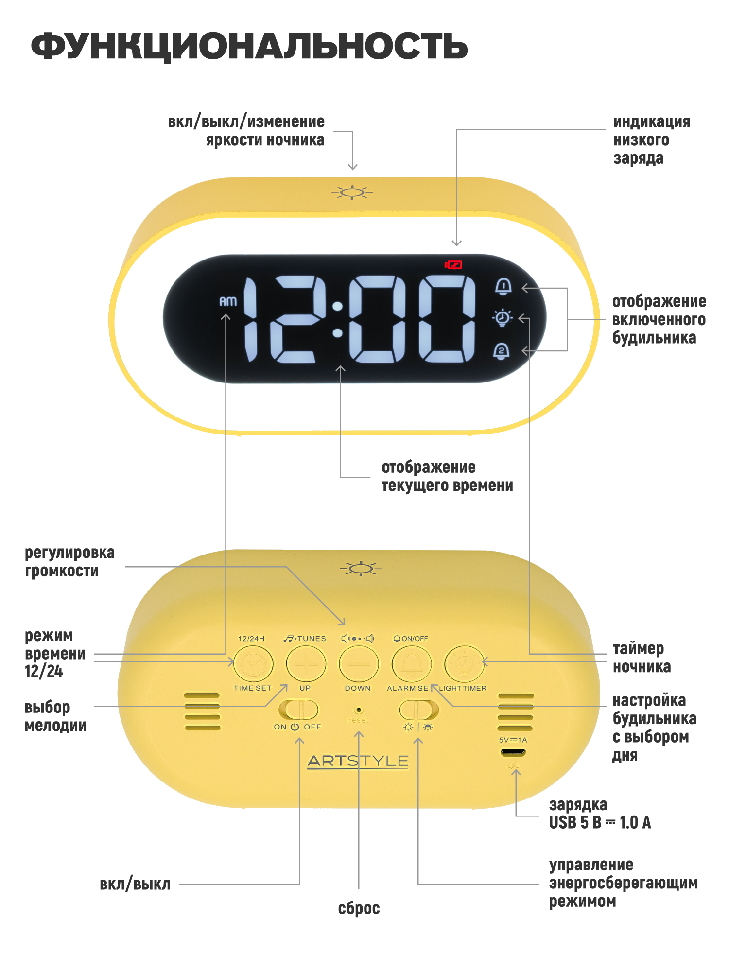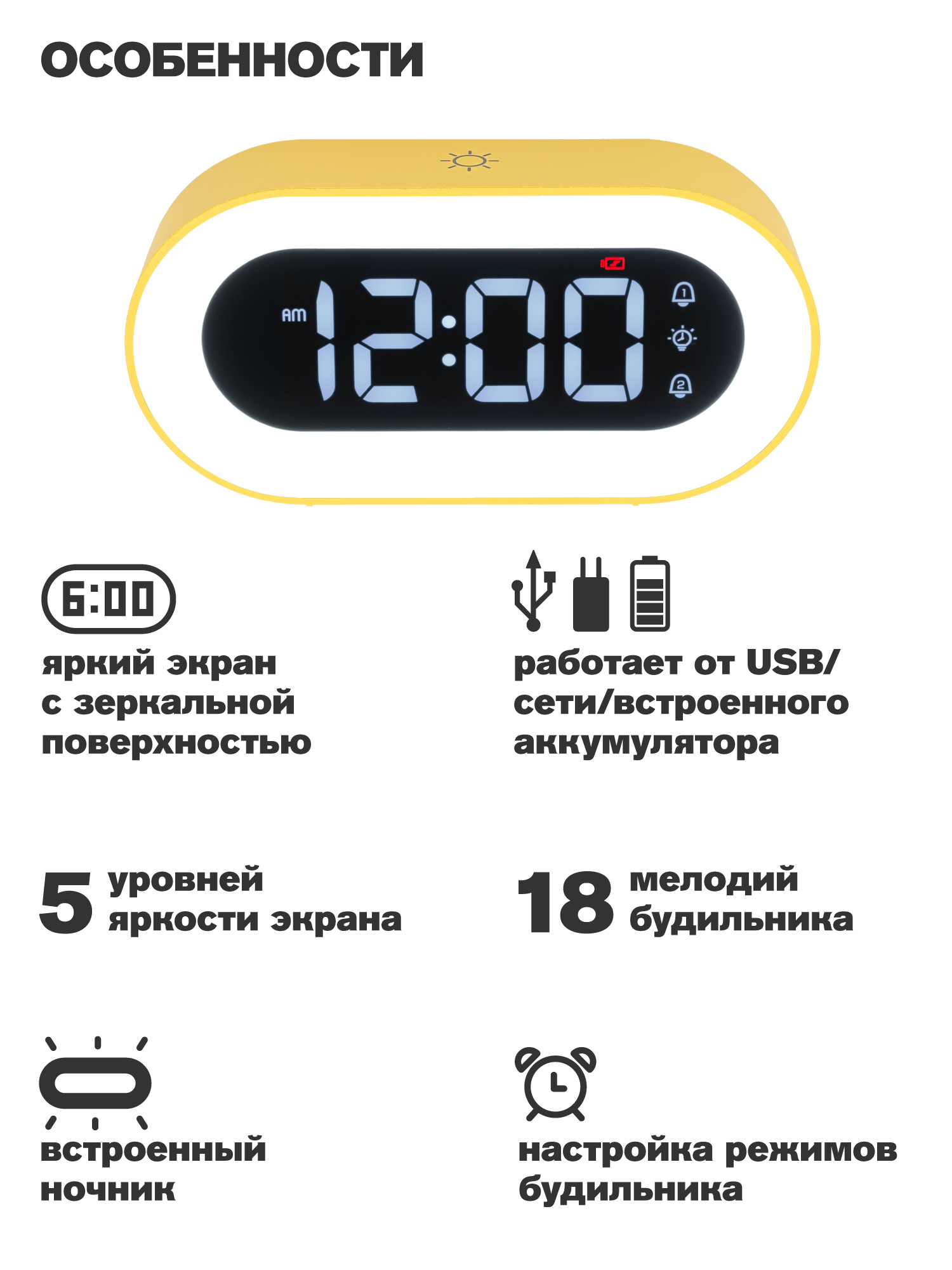 • Цифры арабские (с возможностью переключения на 24-часовой формат времени)