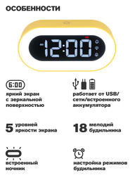 • Символы на циферблате арабские (с возможностью переключения на 24-часовой формат времени)