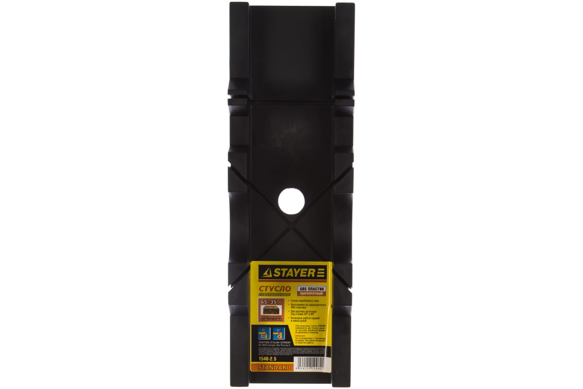 Пластиковое стусло STAYER Midi 65х35 мм 1540-2.5 изготовлено из ударопрочного пластика. В основании корпуса находятся специальные канавки, которые предохраняют инструмент от повреждений при пилении. С помощью стусла можно распиливать заготовки под строго определенным углом.