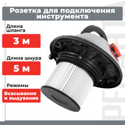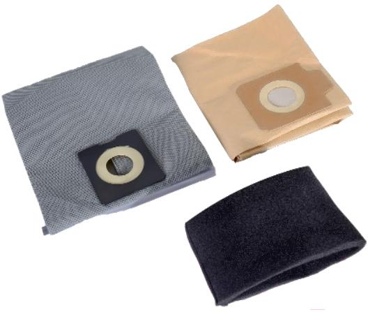 • В комплекте шланг гофрированный 3 м, трубка пластиковая (2 шт.), насадка со щеткой для пола, щелевая насадка (2 шт.), фильтр НЕРА, фильтр поролоновый, мешок тканевый для сбора пыли, мешок бумажный для сбора пыли, колеса (4 шт.), паспорт, упаковка