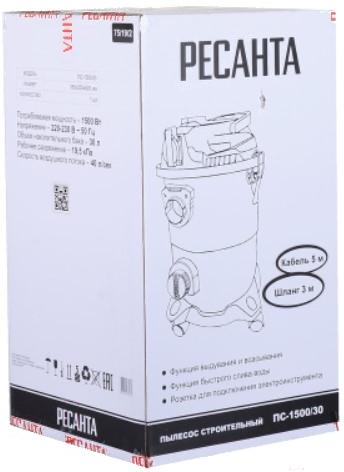 Профессиональный пылесос Ресанта ПС-1500/30 (75/19/2)