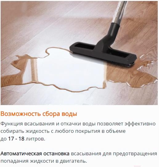 • Возможности уборки сухая, всасывание жидкостей (до 17-18л)