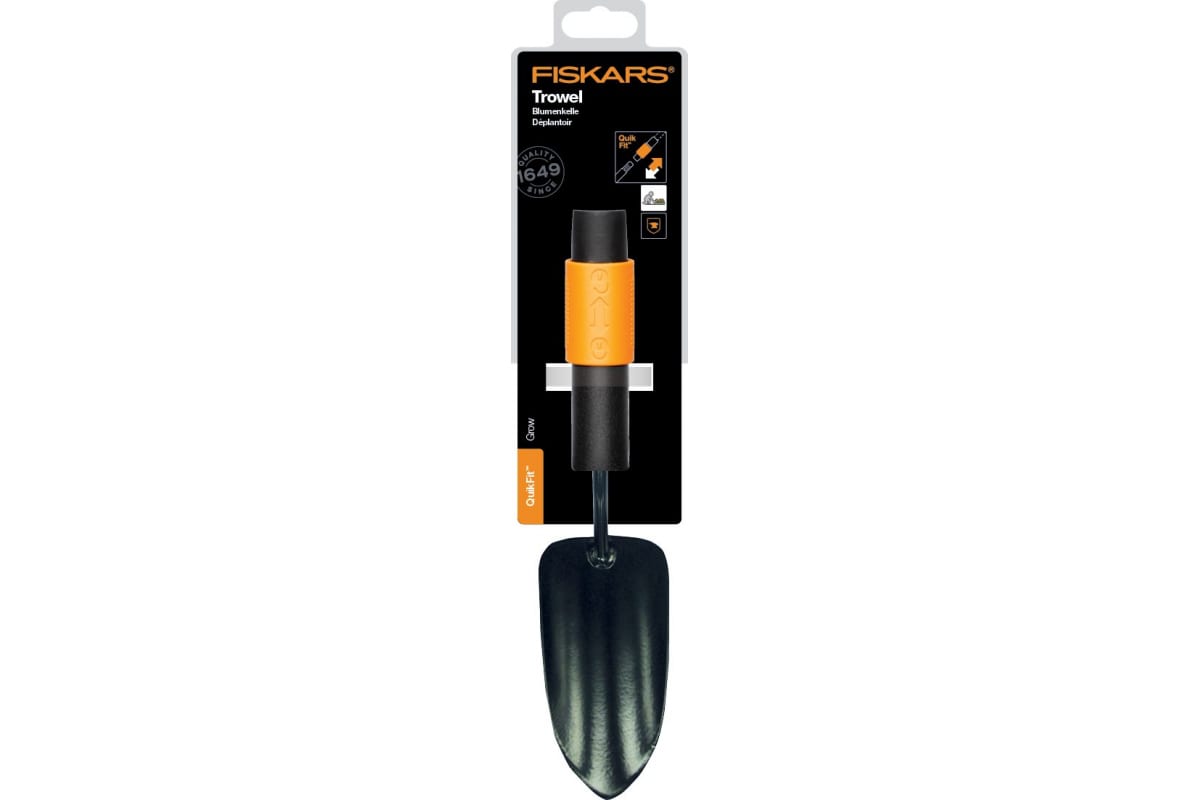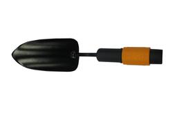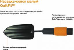 Насадка-совок Fiskars QuikFit малый 1000730 подходит для посадки, пересадки растений и луковичных на грядках, в кадках. Рабочая часть изготовлена из борсодержащей стали, что увеличивает срок службы инструмента. Насадка предназначена для использования совместно с черенком Fiskars QuikFit 1000663.