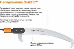 Насадка-пила Fiskars QuikFit 1000691 оснащена двумя крюками по обоим конца лезвия. Это позволяет избежать соскальзывания в процессе пиления.