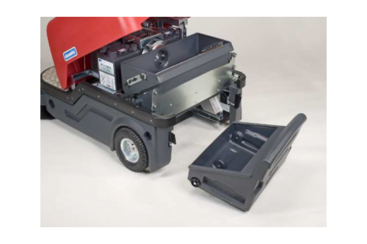 Механическая подметальная машина Cleanfix KS1100 080.000 - это универсальное устройство для уборки больших помещений - парковок, магазинов, складов и офисов. Двигатель мощностью 180 Вт работает от аккумуляторов с напряжением 24 В. Принцип работы прост: боковые щетки сметают мусор к центру машины, а специальная щетка забрасывает его в поддон. Прочный корпус защищает внутренние элементы от ударов и прочих механических повреждений.