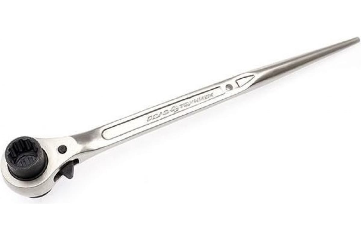 Монтажный трещоточный ключ Дело Техники 13x17 мм 50/2 527173 широко применяется при сборке металлоконструкций, строительных лесов и стеллажей. Надёжный 32-зубцовый трещоточный механизм существенно ускоряет работу и позволяет применять ключ в ограниченном пространстве. Хвостовая часть монтажного ключа используется для совмещения отверстий под крепёж.