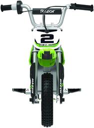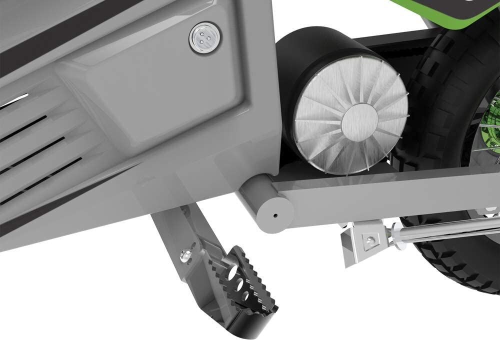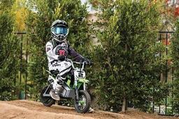 • Papildoma informacija Galima važinėti iki 30 minučių be sustojimo. Variklis: didelio sukimo momentu varomas grandine. Stabdžiai: priekiniai ir galiniai. Droselis: sukimas rankena. Rėmas: plienas su autentiška bekelės geometrija. Šakutė: dviguba karūna. Apdaila: smūgiams atsparus plastikas. Vairas: Reguliuojamas kampas, stovas. Rankenos: minkštos, gumuotos. Ratai: stipinai su 12 ”pneumatinėmis padangomis. Stovas: ištraukiamas. Kojų atramos: sulankstomos, metalinės. Baterija: 24V (du 12V) sandari švino rūgštis, įkraunama. Komplekte: įkroviklis. Amžius: 13+. Būtina surinkti