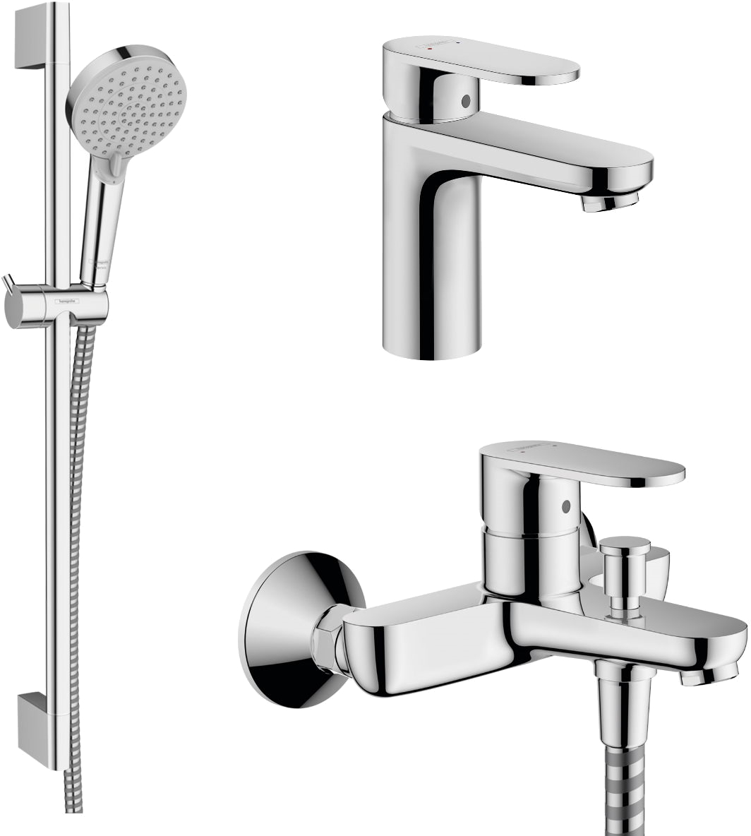 • Комплектация смеситель для умывальника / Hansgrohe Vernis Blend 71551000 /смеситель для ванны и душа / Hansgrohe Vernis Blend 71440000 /душевой гарнитур / Hansgrohe Vernis Blend 26275000 /стойка