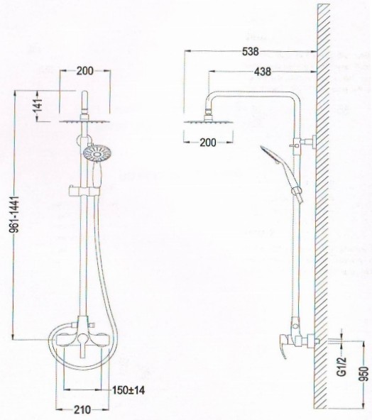 - Комплектация ручной душ (душевая лейка)верхний душ (тропический)смесительстойка / штангадушевой шлангкрепление ручного душа