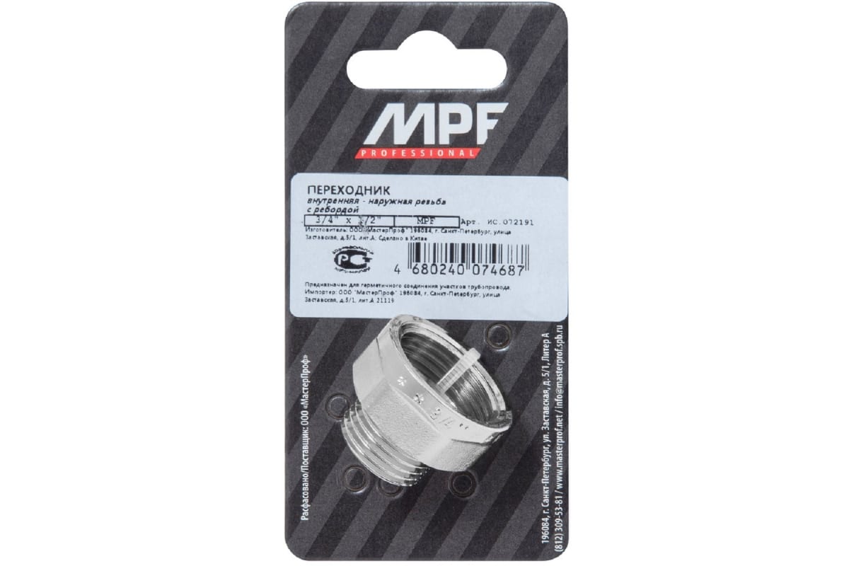 Переходник с ребордой 3/4" х 1/2" в/н MPF ИС.072191