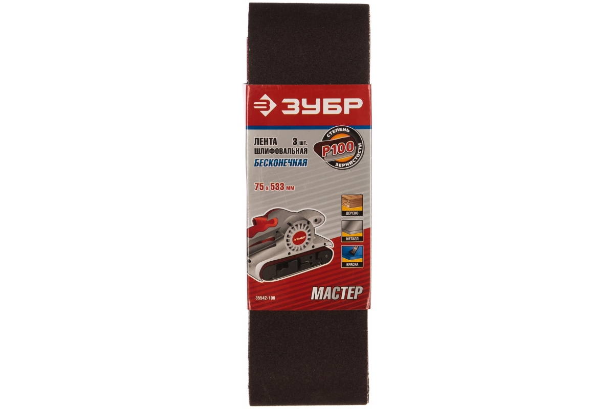Лента шлифовальная универсальная "МАСТЕР" 3шт. (533х75 мм; P100) для ЛШМ Зубр 35542-100