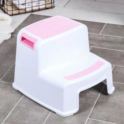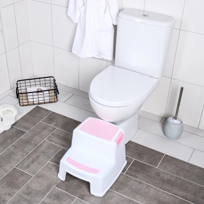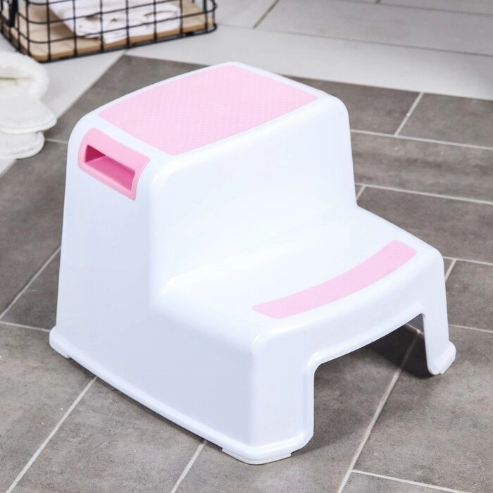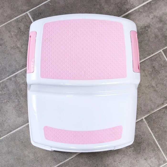 Подставка детская с прорезинеными ступеньками, цвет белый/розовый