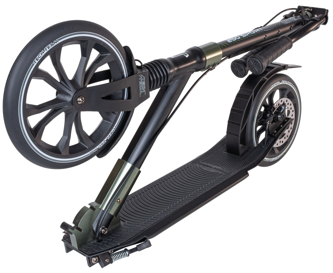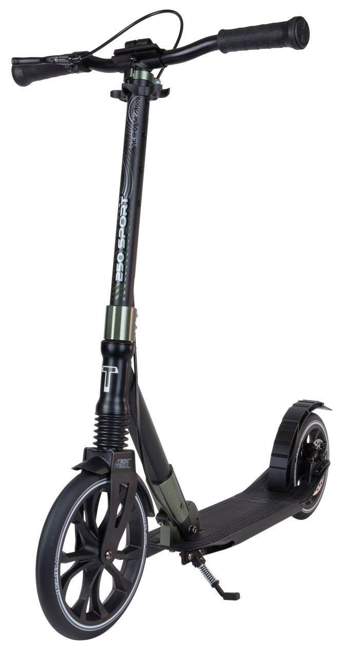 Самокат Tech Team Sport 250R - городской самокат с большими колёсами 250 + 230мм и ручным дисковым тормозом , который легко может стать отдельным видом транспорта. Наличие переднего амортизатора и толстого полиуретана на колёсах отлично снижает вибрацию от стыков и трещин, что заметно повышает комфорт при катании.