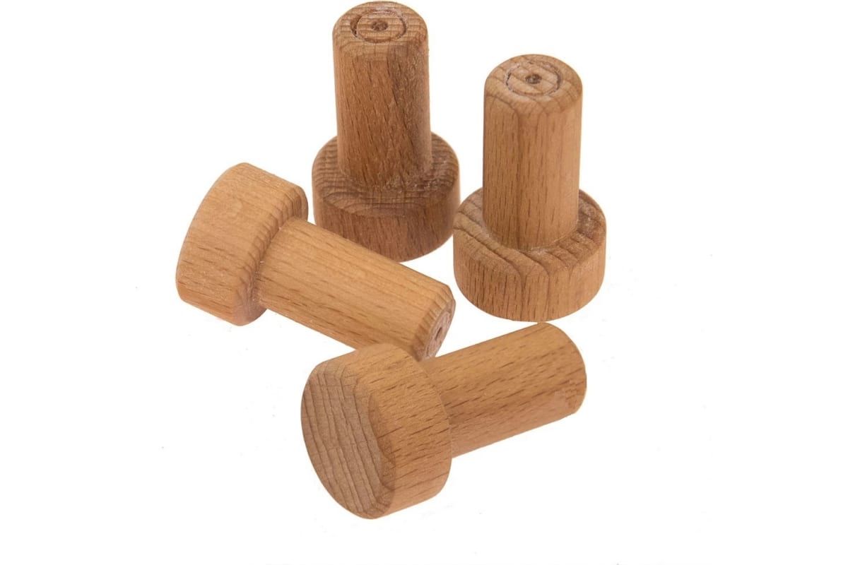 Упоры верстачные круглые сделаны из массива бука и легко устанавливаются в стол или верстак с отверстием 19 мм. Гладкая поверхность упоров позволяет легко устанавливать их в отверстие. Длина упоров 50 мм, голова: Ø 30 мм высота 15 мм, тело: Ø 18.5-18.8 мм высота 35 мм.