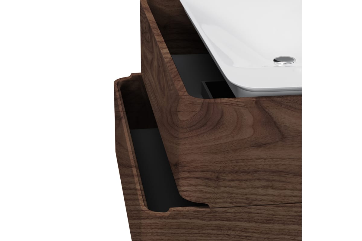 Боковые стенки и фасад представляют собой единое целое, предоставляя ящикам возможность полного выдвижения.