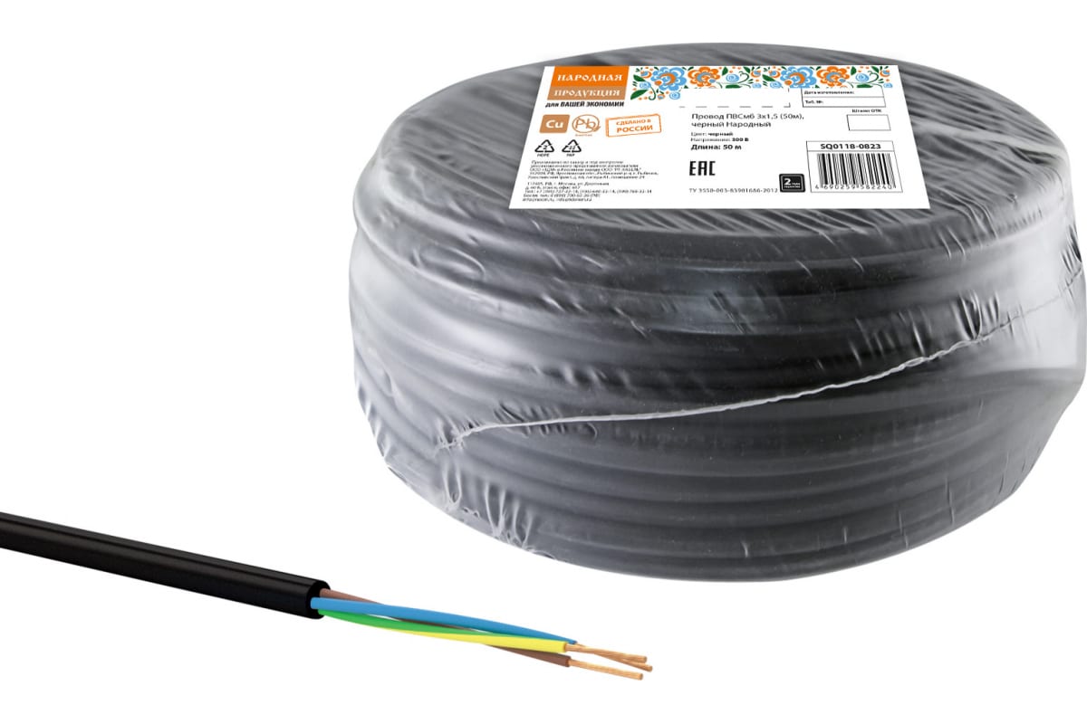 Провод ПВСмб TDM 3x1,5 50м, черный Народный SQ0118-0823