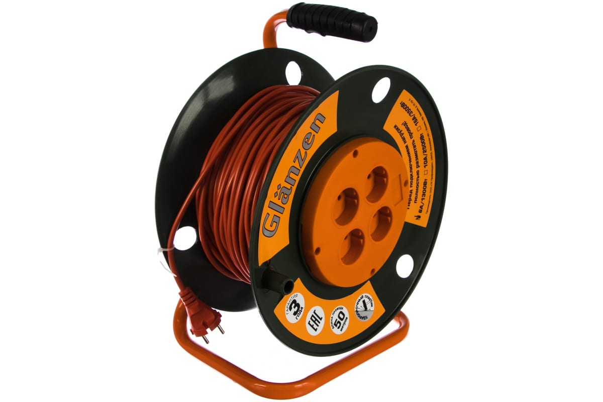 Силовой удлинитель на катушке GLANZEN EB-50-001
