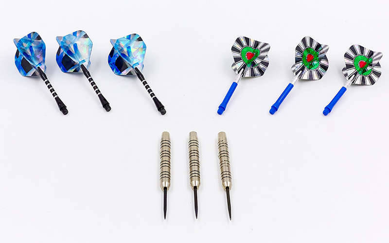 Центральная часть дротика сделана из латуни золотисто цвета. Благодаря дополнительному комплекту хвостовиков и оперения можно с легкостью изменить дизайн дротиков. При изготовлении строго соблюдены все допуски, поэтому дротики имеют отличный баланс и контролируемый полет.