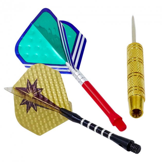 Центральная часть дротика сделана из латуни золотисто цвета. Благодаря дополнительному комплекту хвостовиков и оперения можно с легкостью изменить дизайн дротиков. При изготовлении строго соблюдены все допуски, поэтому дротики имеют отличный баланс и контролируемый полет.
