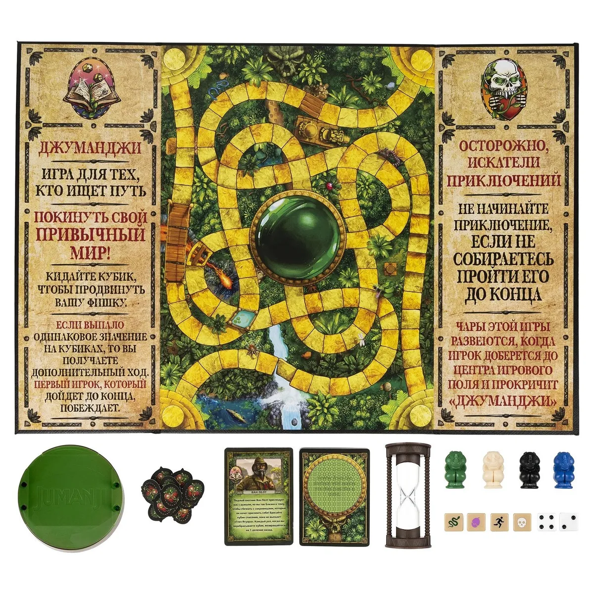 Отправляйся в захватывающее приключение с новой версией настольной игры «Джуманджи Испытания»! Ты и твоя команда искателей приключений окажетесь в дремучих джунглях, полных сюрпризов и тайн. У каждого игрока по 3 жетона жизни, но не стоит недооценивать опасности, подстерегающие вас на каждом шагу! Цель игры - добраться до центра игрового поля и прокричать «Джуманджи!», но будьте осторожны: если у кого-то из вашей команды закончатся жетоны жизни, проиграют все! Сделав ход, возьмите карту и поместите ее в декодер лицевой стороной вверх, чтобы увидеть загадку или испытание, и вы узнаете, что подстерегает вас в Джуманджи. А возможно, что вам потребуется выполнить задание на время или рассказать захватывающую историю о ваших приключениях. Будьте осторожны, не потеряйте жетоны жизни! Игрок, который первым доберется до центра игрового поля и прокричит "Джуманджи", принесет победу всей команде! Игра для 2-4 игроков возрастом от 8-ми лет.НЕ НАЧИНАЙТЕ ПРИКЛЮЧЕНИЕ, ЕСЛИ НЕ СОБИРАЕТЕСЬ ПРОЙТИ ЕГО ДО КОНЦА! Настольная игра Джуманджи Испытание отправит искателей приключений в опасное и интересное путешествие по джунглям. Разгадывайте загадки, проходите испытания, стараясь сохранить жетоны жизни.ИГРАЙТЕ И ПОБЕЖДАЙТЕ ВМЕСТЕ: Игрок, первым достигший центра игрового поля и прокричавший "ДЖУМАНДЖИ!", приносит победу всей команде. Но будьте осторожны: если у одного из игроков заканчиваются жетоны жизни до того, как кто-то достигнет центра игрового поля, то проигрывают все!РАЗГАДЫВАЙТЕ ЗАГАДКИ И ПРОХОДИТЕ ИСПЫТАНИЯ: После каждого хода игрок должен разгадать таинственную загадку или пройти коварное испытание. Избегайте опасностей, выполняйте задания на время и рассказывайте захватывающие истории, чтобы двигаться вперед!ИГРЫ И ГОЛОВОЛОМКИ ОТ СПИН МАСТЕР: Целый мир настольных игр и головоломок для детей и взрослых: викторины, карточные игры, классические шахматы и шашки, а также различные трехмерные головоломки и многое другое.ВЕСЕЛЬЕ ДЛЯ ВСЕЙ СЕМЬИ: Игры от Спин Мастер идеальны для незабываемых игровых вечеров с семьей или друзьями, совместных ужинов, праздников, или когда вы просто хотите повеселиться!В комплекте:1 игровое поле,1 декодер,100 карт испытаний,4 фигурки носорога,12 жетонов жизни,2 кубика,4 кубика спасения,1 песочные часы,1 инструкция.