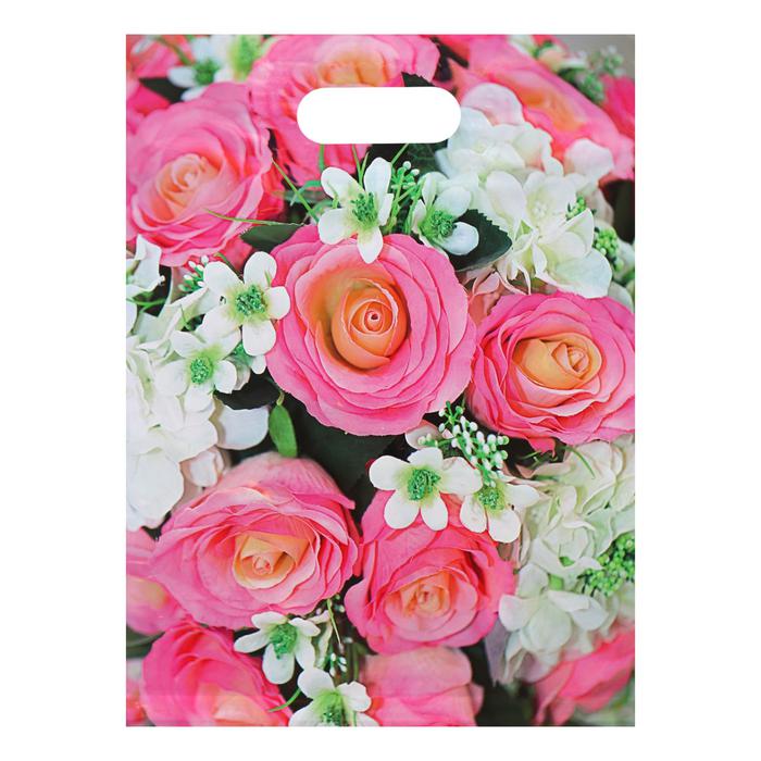 Пакет полиэтиленовый "Розовые розы" 31x40 см, 60 мкм, вырубная усиленная ручка ТикоПластик 4697587 50063602