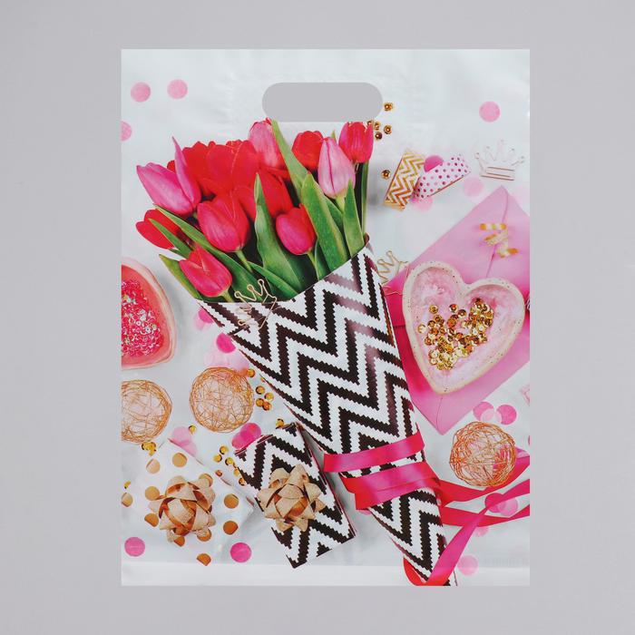 Пакет полиэтиленовый "Букет розовых тюльпанов" 31x40 см, 60 мкм, вырубная усиленная ручка ТикоПластик 4697585 50063601
